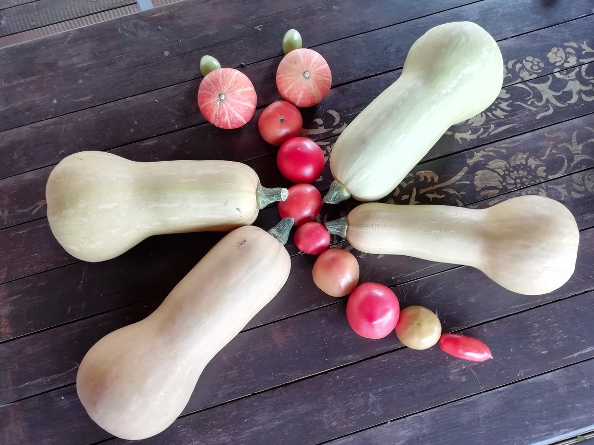 К концу сезона куст тыквы порадовал четырех плодами — достаточно для небольшой семьи. Хотя производитель семян обещал плоды весом 500-800 г, фактический вес оказался гораздо больше. На удивление, легкая тыковка на фото потянула на 1,5 кг, тогда как три ее собратьев достигли веса от 2,24 до 2,34 кг.