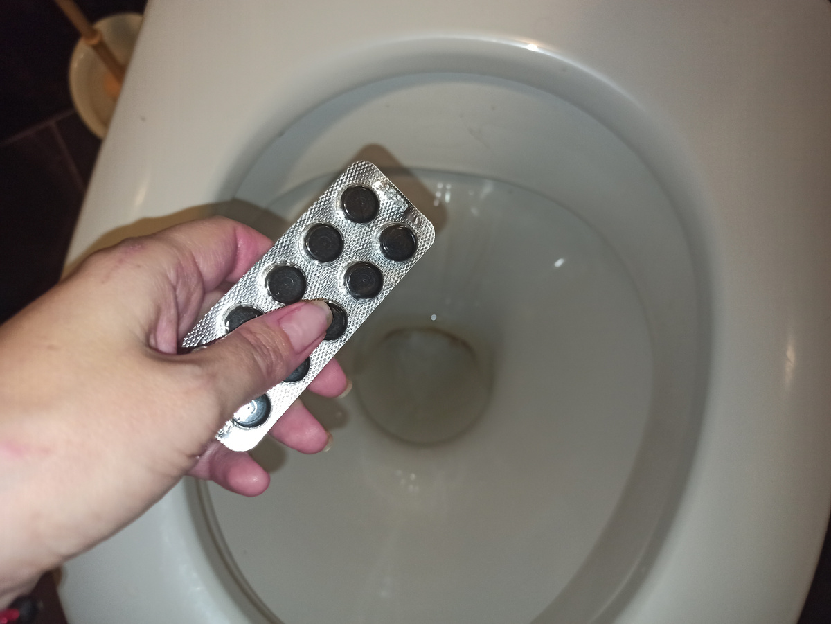 - Разложите три таблетки аспирина на решетке сливного отверстия.