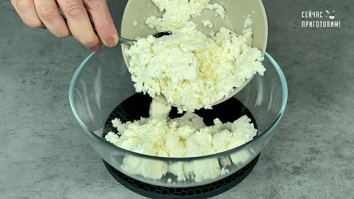 Приготовление начинается с творога, который следует взбить с использованием погружного блендера. Добавление яиц и сахара придаст начинке нужную консистенцию и сладость.