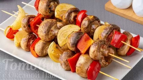 Эти шашлычки из шампиньонов получаются невероятно вкусными и сочными, что делает их идеальным дополнением к основным блюдам!