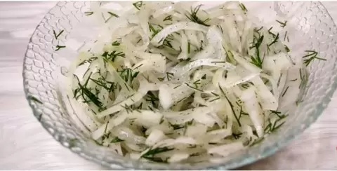 Для начала лук необходимо нарезать тонкими полукольцами. Чтобы смягчить его вкус, лук слегка помнут руками, что поможет вытянуть сок. Затем следует добавить нарезанный укроп, соль, сахар и уксус или лимонный сок. Все компоненты тщательно перемешиваются. Удивительно, но всего через три минуты маринованный лук будет готов к подаче на стол!
