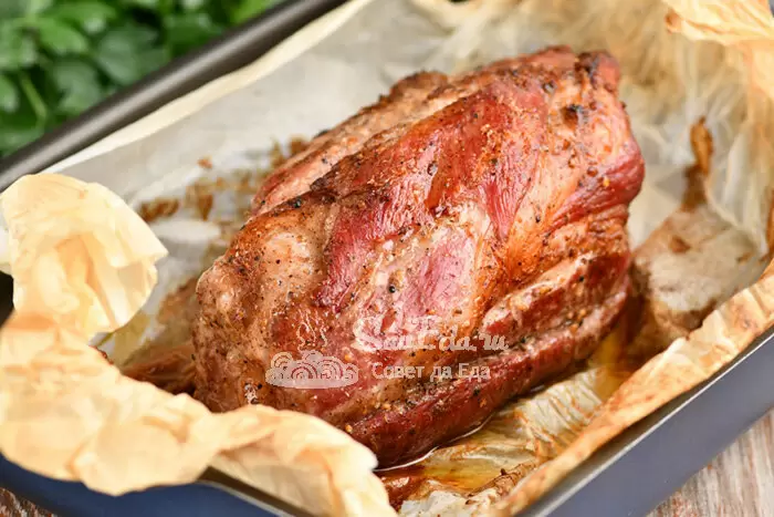 Обвяжите мясо шпагатом, добросовестно втирая смесь. Заверните в пергамент и запекайте в заранее разогретой духовке при 180 градусах в течение 1.5 часов. Готовое мясо должно отдохнуть около 10 минут перед нарезкой. Это отличный вариант как для горячего подачи, так и в качестве нарезки на закуску.