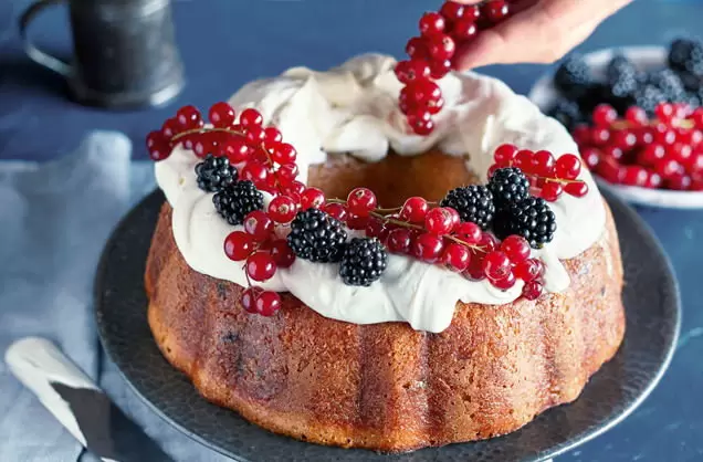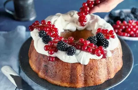 Как только тесто поднялось, в него добавляют сушеные ягоды, орехи и цедру апельсина. Форму для кекса смазывают и заполняют тестом, оставляя его подняться еще раз, а затем выпекают до золотистой корочки.