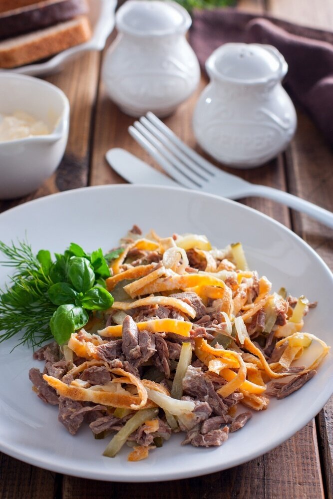 Салат из говядины с яичными блинами – это блюдо, которое сочетает в себе яркие вкусы и интересные текстуры. Это не просто угощение, а поистине кулинарное произведение, способное удивить ваших гостей и сделать любой прием пищи особенным. Рассмотрим, как его приготовить.