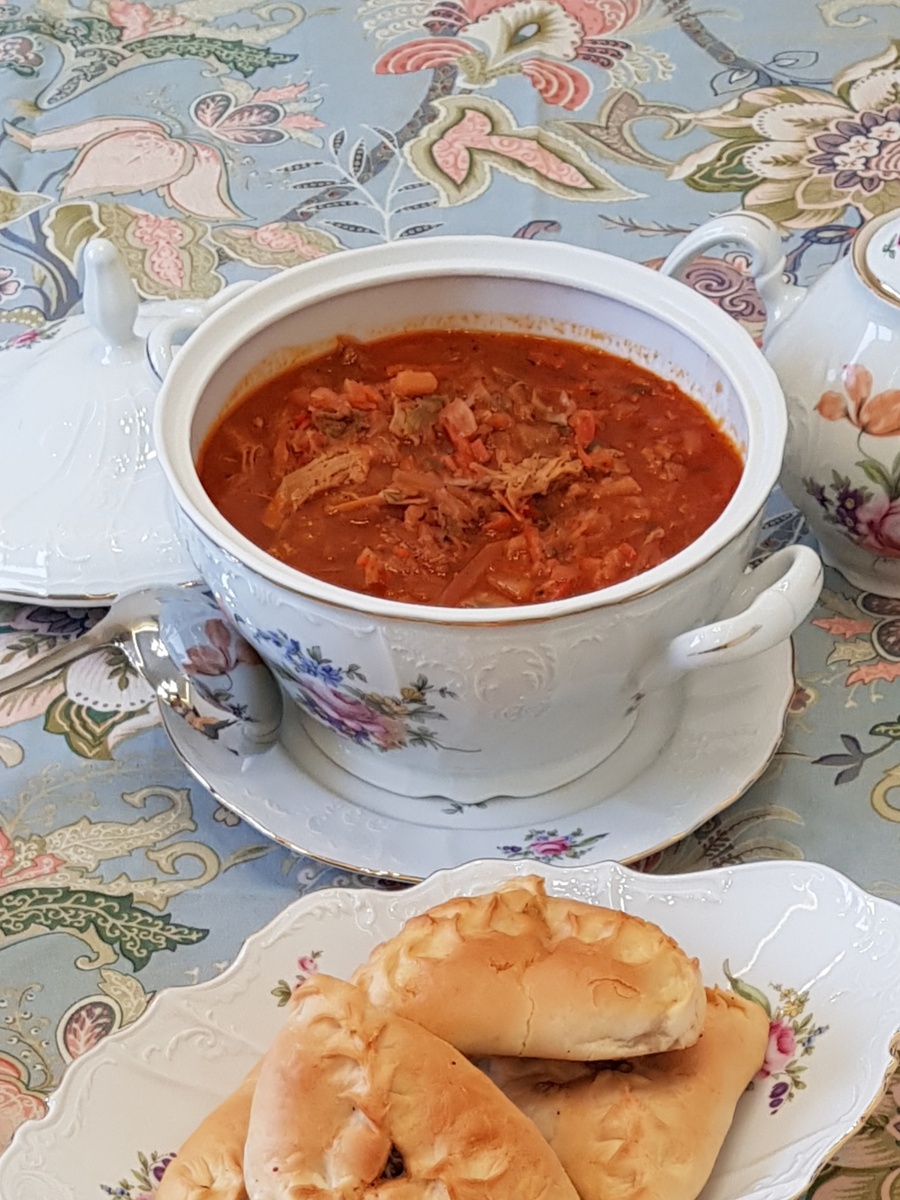 Подавайте горячий борщ со сметаной и свежим хлебом. Это идеальное блюдо, которое согревает в холодную погоду и сближает родных за общим столом.