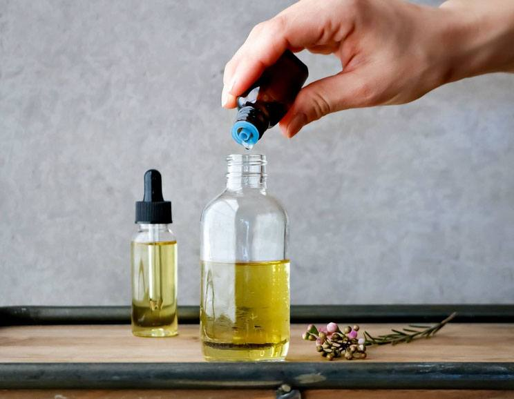 Эти масла можно смешать и втирать в кожу головы раз в неделю, что способствует улучшению здоровья и предотвращает выпадение волос. Розмарин стимулирует рост, касторовое масло увлажняет, а жожоба укрепляет луковицы.