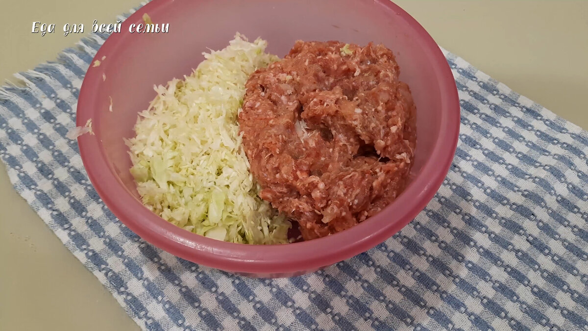 Капусту натереть на крупной терке и смешать с фаршем. Обычно готовый фарш уже содержит яйца и специи – это сократит время на подготовку. Вымешать смесь до однородной консистенции.