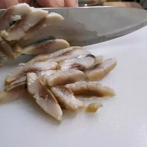 Главный акцент в этом блюде – селедка. Она отвечает за насыщенный вкус, и, если нет времени на чистку, можно смело воспользоваться уже готовым филе. Далее следует другой обязательный ингредиент – вареная картошка. Она добавляет блюду легкость и структурность, нарезанная кубиками.