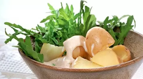 - Молодой картофель с пикантным йогуртом, который идеально дополнит любой вид рыбы.