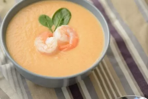 После завершения цикла переложите суп в отдельную емкость, добавьте сливки и взбейте с помощью блендера до достижения однородной консистенции. Перед подачей обязательно добавьте готовые креветки в крем-суп для дополнительного вкуса и презентации.