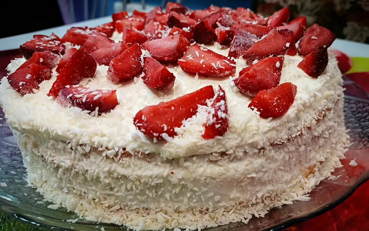 Торты — это не просто десерт, а настоящая вишенка на праздничном столе. В этот раз приготовлен классический бисквит с нежным сливочным кремом, который обязательно украсит любое торжество. Идеально подходит как для новогоднего, так и для рождественского застолья, этот торт выполнен с добавлением замороженной клубники и кокосовой стружки, что придает ему уникальный вкус и тем самым создает атмосферу праздника.