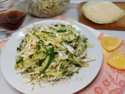 - Салат из капусты с соевым соусом и огурцом: