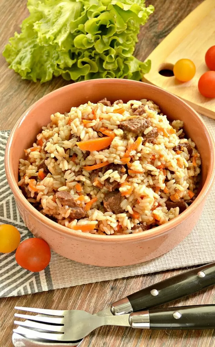 Ваш аппетитный плов с говядиной в мультиварке готов. Приятного аппетита!