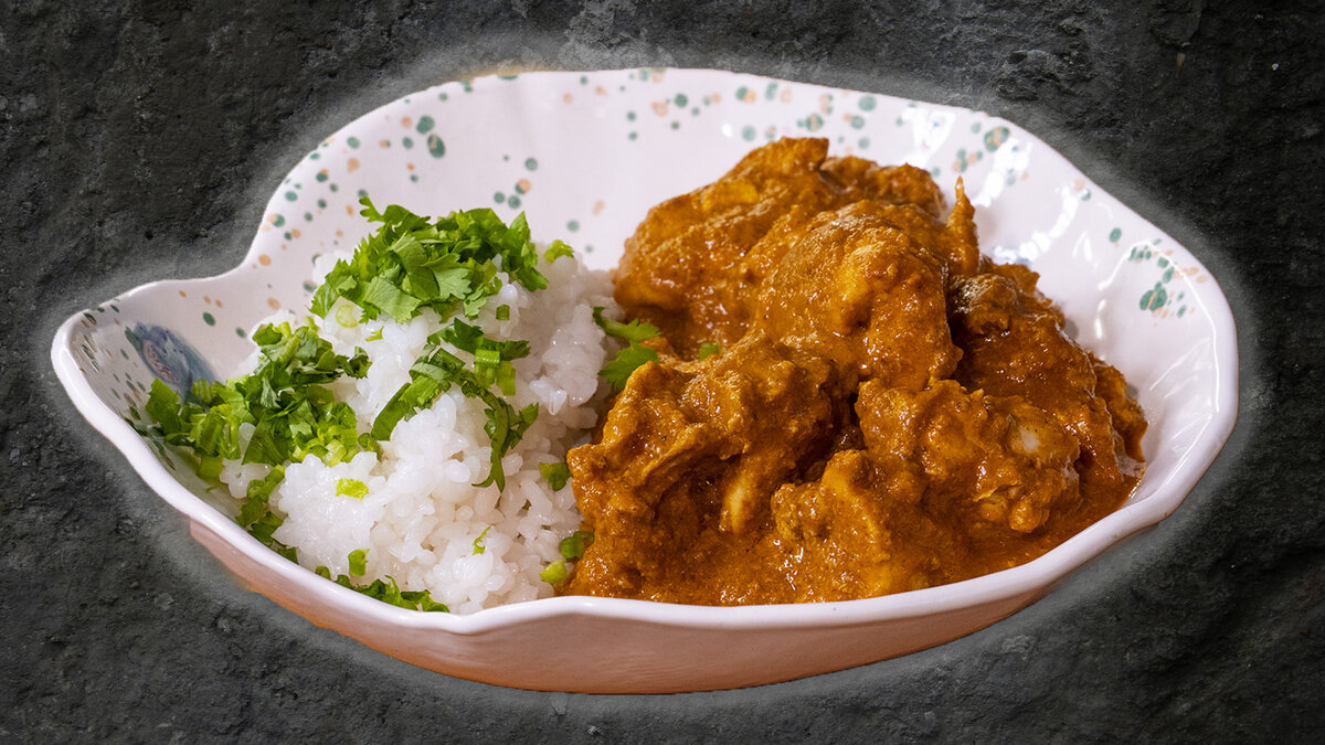 Куриные кусочки нанизывают на шпажки и запекают в духовке при 230 градусах примерно 15 минут. Подготовленный соус взбивают в блендере до однородной консистенции и возвращают на плиту, добавляя сливки и курицу. Подают блюдо с рисом, которую кинза прекрасно дополнит и смягчит остроту.