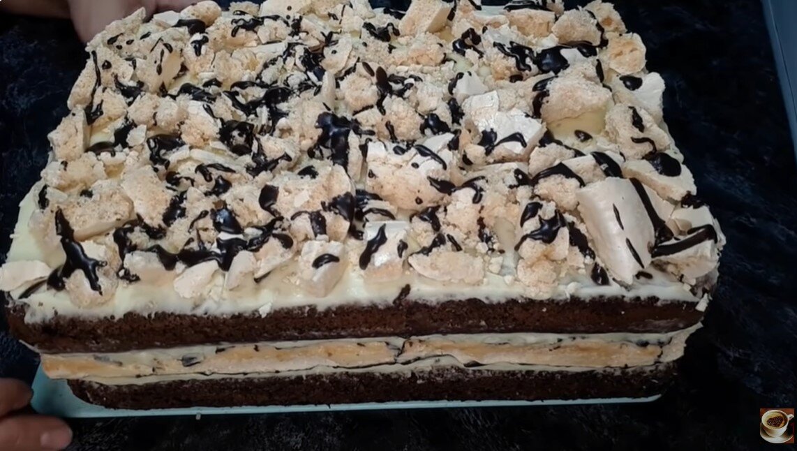 Приготовление начнется с безе, так как оно требует большего времени и усилий. Нужно взбить белки с сахаром до устойчивых пиков, а затем аккуратно высушить их в духовке. В это время стоит заняться бисквитами: смешать все ингредиенты, поместить тесто в форму и выпекать до готовности.
